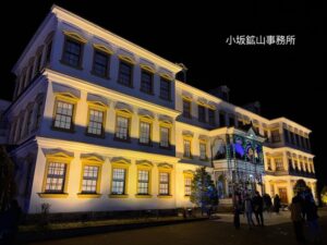 会場にある「小坂鉱山事務所」もライトアップされてて、雰囲気いいですね~